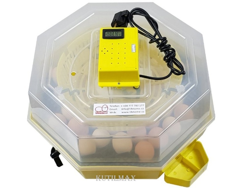 Najpredávanejšie liaheň na vajcia vhodná k liahnutie vodné a hrabavej hydiny - pre kurčatá, prepelice, kačice, morky, husi a bažanty. S poloautomatickým otáčaním až 41ks slepačích vajec - možnosť aj ručného otáčania vajec, s reguláciou teploty od 35 do 40°C, s manuálnou reguláciou vlhkosti, s nádržkou na prívod vody, s teplomerom a s vlhkomerom.